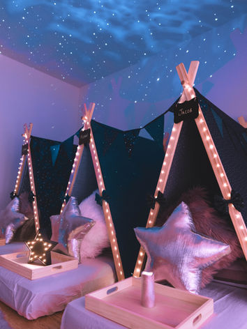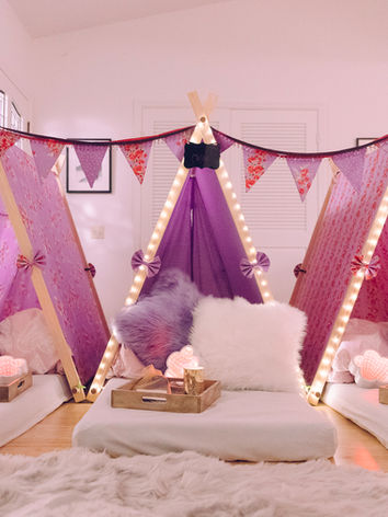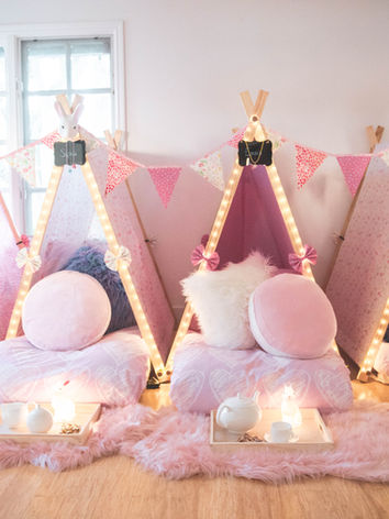 Elite Teepees℠ deliver & set up beautifully curated teepees in the comfort of your own home, then pack it all away the next day so you can enjoy a hands-off, exquisite sleepover experience.